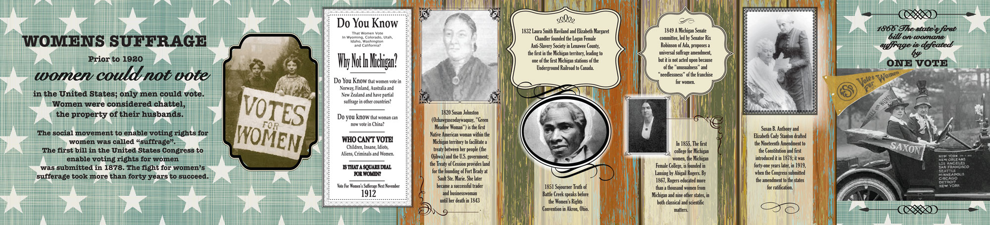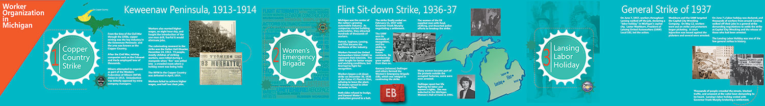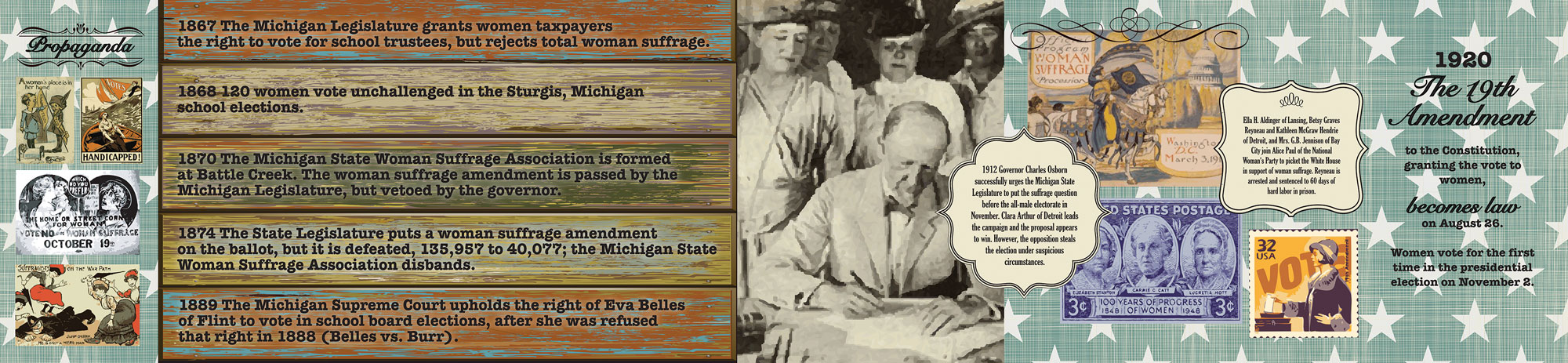 Michigan Labor Left Wall Michigan Labor Long Wall Michigan Labor Right Wall Underground Railroad Michigan Agriculture Michigan Agriculture Women's Suffrage Women's Suffrage Women's Suffrage