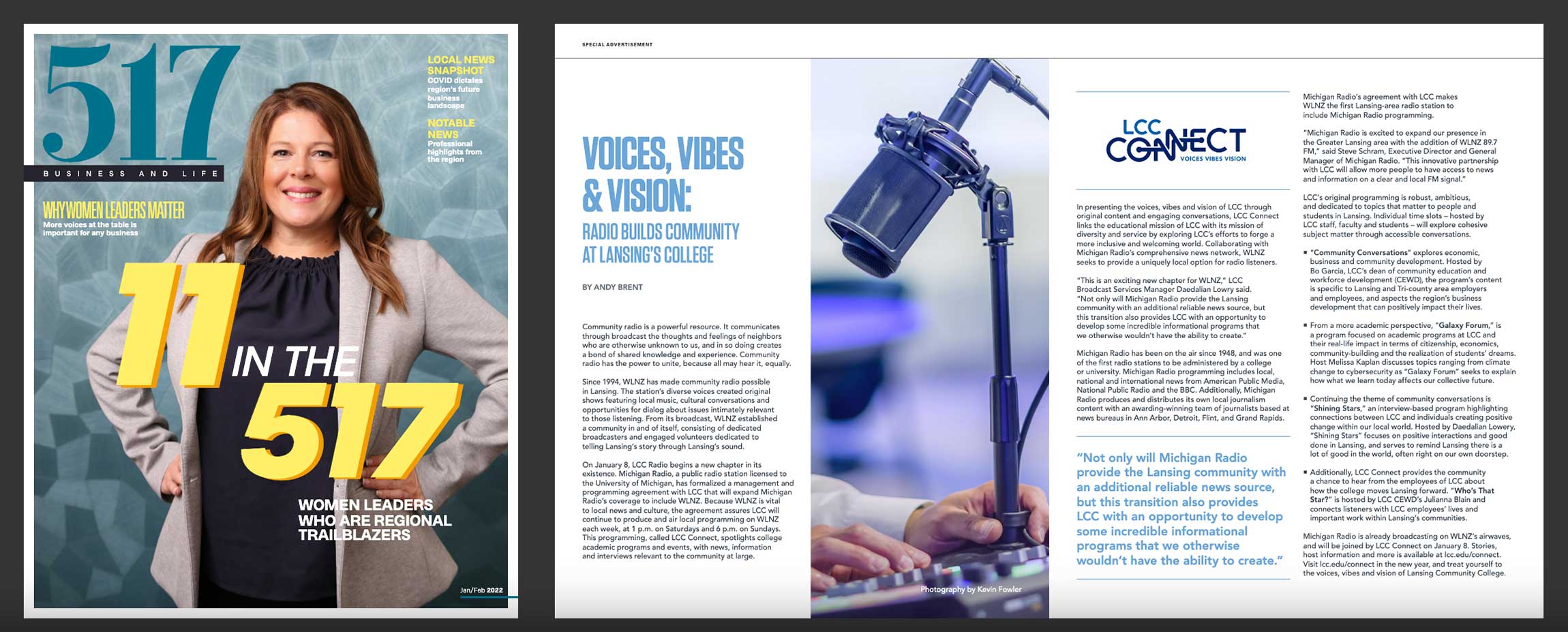 LCC and Michigan Radio launched a formalized management agreement bringing public radio programming, including popular shows like “Marketplace”, “BBC Newshour” and “Stateside,” to WLNZ 89.7 FM in addition to providing LCC with the opportunity to continue airing locally produced programming on Saturdays at 1 p.m. and Sundays at 6 p.m.