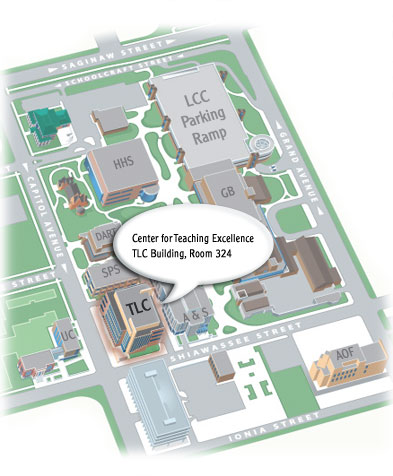 Once you are on LCC's main campus, you can use the map below to find the TLC building and the location of the Center for Teaching Excellence.
