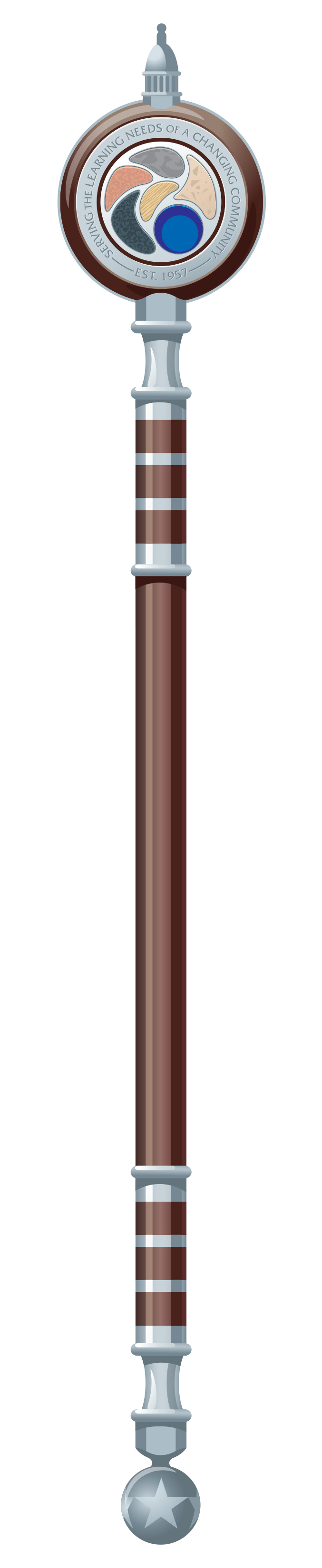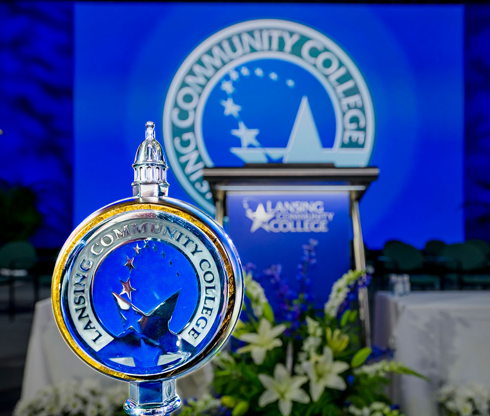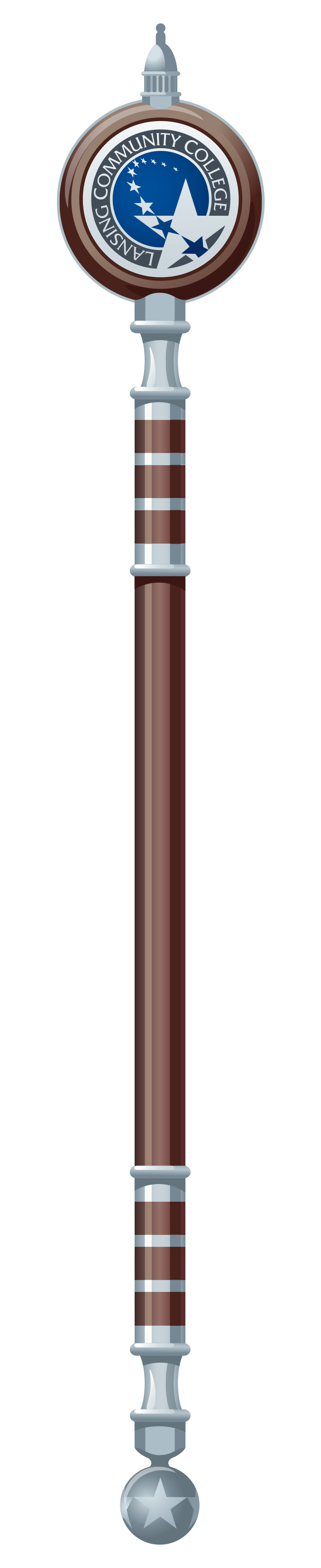 The College Mace and Presidential Medallion symbolize the College's commitment to our students and the communities we serve. Since 1957, Lansing Community College (LCC) has been a place where success begins. Where students can discover their Starpower, Define Themselves, or just simply know that they belong here. In 2023, LCC unveiled new, custom-designed versions of the College Mace and Presidential Medallion. Each piece was carried and worn for the first time at the College's 65th Commencement Ceremony on May 11, 2023.